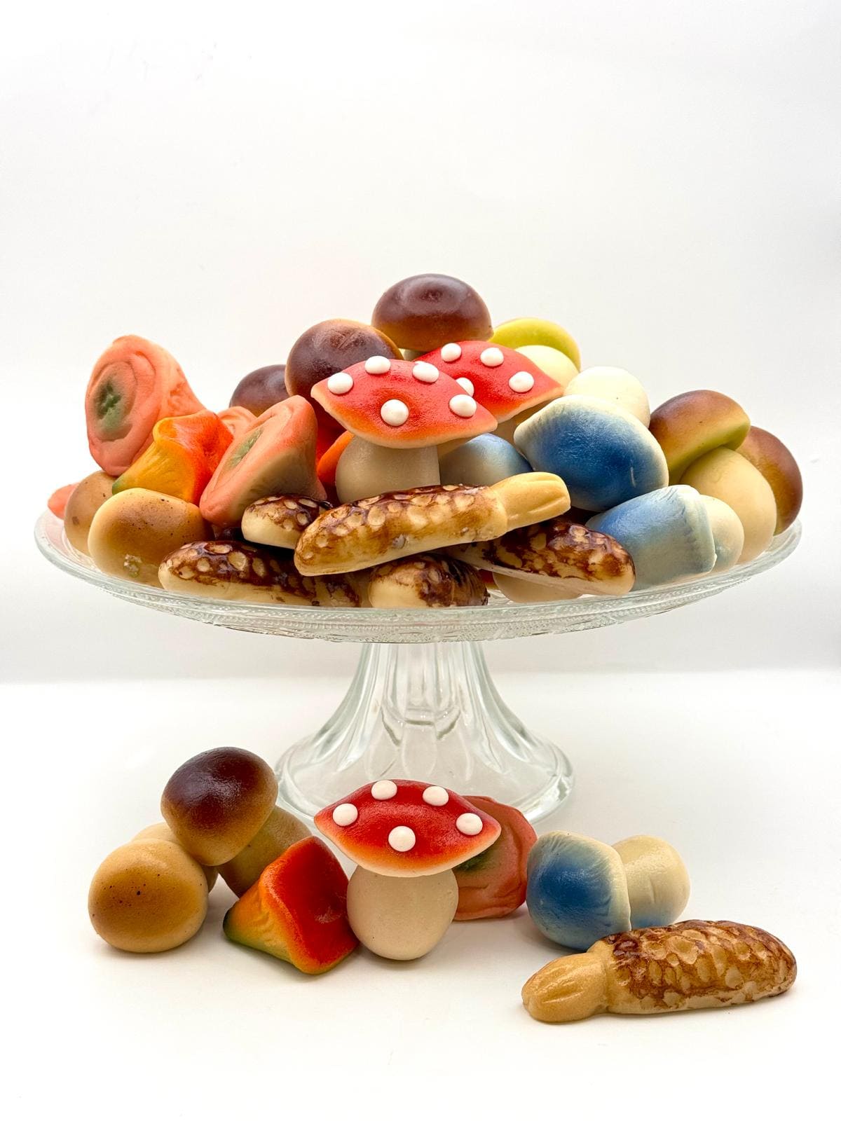 Notre assortiment de champignons en pâte d'amande réunit les espèces les plus emblématiques de nos forêts et de notre imaginaire collectif. Vous y découvrirez :